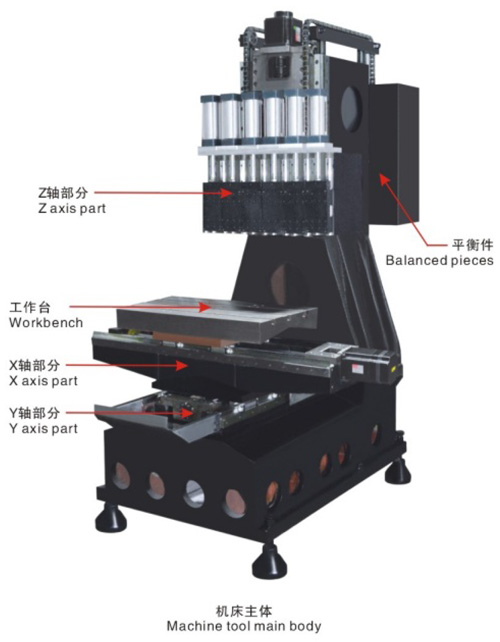 3、直排主軸:并排放置高轉(zhuǎn)速電主軸,具有換刀快安全可靠性高的特點(diǎn),主軸最高轉(zhuǎn)速達(dá)到24000RPM。